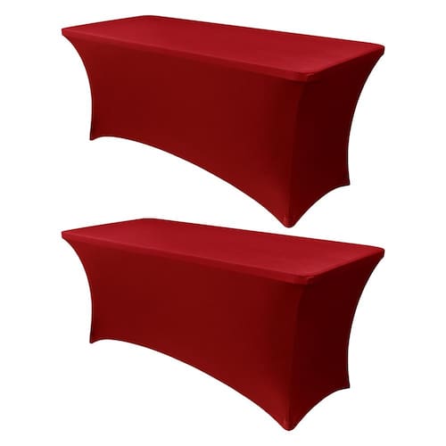 Estas capas de mesa dobráveis de ajuste universal oferecem uma aparência elegante e moderna à mesa de festa comum. Feitas com material 90% poliéster e 10% elastano, nossas toalhas de mesa elásticas podem ser lavadas várias vezes sem danos à elasticidade.