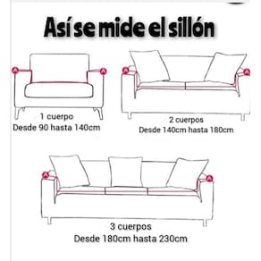 Practicas Fundas Cubre Sillon de tela elasticada de tela LISA, para un Sillon de 3 cuerpos que no sea tan ancho que mida entre 180 cm y 220 cm, con una altura de 90 cm.. debe medir el Sillon segun imagen publicada para que no le quede chico.Esta funda es de excelente calidad, facil de lavar ideal.. para proteger su Sofa y renovar su aparidad sem necessidade de tapizar... Grande variedade de cores e designs. Vem com 2 capas de moedas
