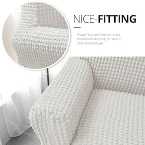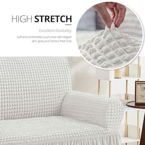 A capa de sofá de aparência única e elegante torna a atmosfera do quarto mais relaxante. - Regulação da atmosfera: as capas de sofá feitas de tecido elástico exclusivo são adequadas para a maioria dos sofás. Esta capa de sofá com saia elegante dá à sua casa um visual fresco. - Fácil ajuste: nossas capas marfim para poltrona têm excelente flexibilidade. É fácil de encaixar em vários tipos de sofás (meça o tamanho com antecedência de acordo com os desenhos de dimensões à esquerda). O rolo de espuma antiderrapante evita que a capa do sofá escorregue. O cordão elástico pode ajustar facilmente a posição da saia. - [Protetor de móveis] As capas de poltrona marfim podem proteger seu sofá do uso diário, rasgos, pelos de animais de estimação e manchas por toda parte. Perfeito para casas com crianças e animais de estimação. - [Super-tecido] A capa de poltrona marfim é feita de 97% poliéster e 3% elastano, que é mais elástica e durável. Secagem mais rápida do que tecidos comuns após a lavagem na máquina. - Alta qualidade: a capa de sofá é feita de tecido exclusivo, resistente ao desgaste e não é fácil de rasgar, e as capas de sofá podem cobrir efetivamente a cor do sofá.
