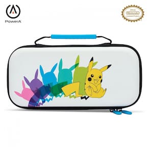 A capa de proteção PowerA para Nintendo Switch foi desenvolvida para transporte seguro do console em modo portátil, oferecendo estrutura rígida externa e interior moldado para melhor acomodação do equipamento. O revestimento interno em feltro ajuda a reduzir riscos na superfície do console, enquanto o compartimento em malha com zíper permite armazenar pequenos acessórios de forma organizada.