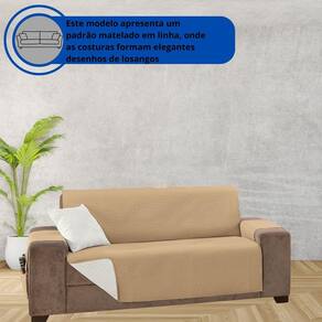 Capa De Sofá 3 Lugares Impermeável Dupla Face Com Bolsos Variação: Cáqui e Palha Olá, seja muito bem-vindo a Se você ama sua sala arrumada e valoriza praticidade no dia a dia, temos o produto ideal para facilitar sua rotina e ainda deixar seu ambiente mais bonito Conheça a Capa Protetora de Sofá Padrão 3 Lugares Impermeável Dupla Face Mais do que uma capa, uma solução completa para o seu sofá Seu sofá vive exposto a líquidos, sujeira ou pelos de pet Evite dores de cabeça com manchas e danos no estofado. A nossa capa impermeável é a escolha perfeita para quem quer proteger e decorar ao mesmo tempo - e o melhor: com ótimo custo-benefício Por que nossos clientes AMAM essa capa Proteção total: Acabou o medo de acidentes com líquidos. Dois visuais em um só produto: Um lado, um estilo. Do outro, outro ambiente Organização na prática: Bolsos nos braços para controle remoto, celular, revistas... tenho crianças pequenas e essa capa me salvou várias vezes meu cachorro vive no sofá e agora não me preocupo mais. adorei as cores Comprei mais uma para revezar. Especificações técnicas: Modelo: 3 Lugares - Impermeável e Dupla Face Medidas da Capa LxA : 1,50 x 1,90 m Medida com braços: 3,10 x 1,90 m Medidas dos braços: 0,40 x 0,80 m cada Tecido: 100% Poliéster Manta Interna: 100% Poliéster Forro: 100% Polipropileno Acabamento com viés Com bolsos laterais disposição pode variar entre direito e esquerdo Lavagem recomendada: à mão dica importante: o produto é impermeável, mas em contato prolongado com líquido pode ocorrer umidade no estofado. Por isso, limpe o excesso o quanto antes. de 3 meses contra defeitos de fabricação. Compre com confiança e segurança. Resumo da proposta de valor: O que você vai receber: 1 Capa Protetora de Sofá Padrão 3 Lugares Impermeável Dupla Face com bolsos Obrigado pela visita à Atual Ecommerce