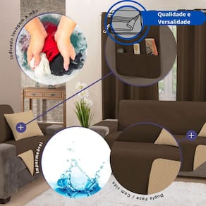 Capa De Sofá 4 Lugares Impermeável Com Bolsos Lavável Atual Variação: Cáqui e Marrom Olá Que bom ter você por aqui Se você ama manter a casa bonita, protegida e prática mesmo com pets ou crianças em casa, a solução que você procurava chegou Conheça a Capa Protetora de Sofá Padrão 4 Lugares Impermeável Dupla Face Desenvolvida para unir beleza, proteção e funcionalidade no seu dia a dia, essa capa é perfeita para quem quer evitar manchas, sujeiras ou desgastes no sofá sem perder o estilo. Sofá protegido, ambiente renovado e muito mais praticidade Com tecido impermeável que impede líquidos de atingirem o sofá e bolsos funcionais que mantêm os itens essenciais sempre ao alcance, essa capa ainda oferece duas opções de cor para você mudar o visual do ambiente quando quiser. Clientes que já usam recomendam: com três filhos em casa, essa capa salvou meu sofá Fácil de limpar e linda. - Daniela, GO comprei por causa dos bolsos e amei Tudo organizado e o sofá novo sempre. - Vanessa, SP impermeável de verdade Derrubei café e não manchou. Vale muito a pena. - Fabiana, MG Especificações Técnicas do Produto: Modelo: Impermeável Dupla Face Composição: Tecido: 100% Poliéster Manta: 100% Poliéster Forro: 100% Polipropileno Estrutura: Matelado, com acabamento em viés Medidas aproximadas: Assento: 2,20 m Capa: 2,20 x 1,90 m Braços: 0,40 x 0,80 m costurados junto à capa Medida total: 3,80 x 1,90 m Características: Impermeável Reversível duas cores Com bolsos funcionais Lavagem recomendada à mão Importante: O produto pode apresentar leve variação de cor conforme o lote do tecido ou tipo de tela. Garantimos a qualidade com 3 meses de contra defeitos de fabricação. Garanta agora a proteção ideal para seu sofá limitado. Compre hoje mesmo e transforme o seu ambiente com praticidade, beleza e economia. Agradecemos a sua visita A Atual Ecommerce está à disposição para cuidar da sua casa com qualidade e confiança. Marca: Não Informado Ean: 7907573677413