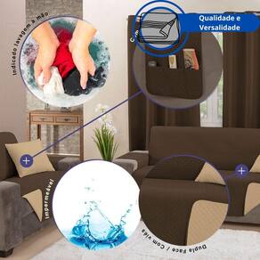 Capa De Sofá 4 Lugares Impermeável Com Bolsos Lavável Atual Variação: Cáqui e Marrom Olá Que bom ter você por aqui Se você ama manter a casa bonita, protegida e prática mesmo com pets ou crianças em casa, a solução que você procurava chegou Conheça a Capa Protetora de Sofá Padrão 4 Lugares Impermeável Dupla Face Desenvolvida para unir beleza, proteção e funcionalidade no seu dia a dia, essa capa é perfeita para quem quer evitar manchas, sujeiras ou desgastes no sofá sem perder o estilo. Sofá protegido, ambiente renovado e muito mais praticidade Com tecido impermeável que impede líquidos de atingirem o sofá e bolsos funcionais que mantêm os itens essenciais sempre ao alcance, essa capa ainda oferece duas opções de cor para você mudar o visual do ambiente quando quiser. Clientes que já usam recomendam: com três filhos em casa, essa capa salvou meu sofá Fácil de limpar e linda. - Daniela, GO comprei por causa dos bolsos e amei Tudo organizado e o sofá novo sempre. - Vanessa, SP impermeável de verdade Derrubei café e não manchou. Vale muito a pena. - Fabiana, MG Especificações Técnicas do Produto: Modelo: Impermeável Dupla Face Composição: Tecido: 100% Poliéster Manta: 100% Poliéster Forro: 100% Polipropileno Estrutura: Matelado, com acabamento em viés Medidas aproximadas: Assento: 2,20 m Capa: 2,20 x 1,90 m Braços: 0,40 x 0,80 m costurados junto à capa Medida total: 3,80 x 1,90 m Características: Impermeável Reversível duas cores Com bolsos funcionais Lavagem recomendada à mão Importante: O produto pode apresentar leve variação de cor conforme o lote do tecido ou tipo de tela. Garantimos a qualidade com 3 meses de contra defeitos de fabricação. Garanta agora a proteção ideal para seu sofá limitado. Compre hoje mesmo e transforme o seu ambiente com praticidade, beleza e economia. Agradecemos a sua visita A Atual Ecommerce está à disposição para cuidar da sua casa com qualidade e confiança. Marca: Não Informado