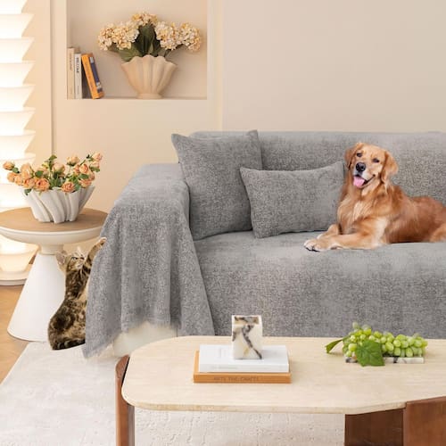 Capa HANDONTIME COUCH. Material: Pele sintética de coelho de alta qualidade, macia, grossa, antirrugas, antidesbotamento A embalagem inclui: 1 capa de sofá. Informações de tamanho: Tamanho grande: 180 x 299 cm. Tamanho GG - 180 x 340 cm. Tamanho 2GG: 180 x 381 cm. Instruções de lavagem: Lavar à máquina, lavar com água morna; não usar alvejante; secagem em baixa temperatura; passar a ferro em baixa temperatura; pendurar para secar na sombra, evitar exposição ao sol" Observação: A cor real pode variar da cor da tela devido a restrições de cor do monitor. Devido à medição manual, pode haver um erro de 2,5 a 12,7 cm. - Como escolher: meça seus móveis antes de comprar. Recomendamos o tamanho grande 180 cm x 299 cm para sofás; tamanho GG 180 x 340 cm para sofás; tamanho 2GG 180 x 381 cm para sofás grandes; adequado para a maioria dos sofás, oferece cobertura perfeita para o sofá (incluindo apoios de braços) - CARACTERÍSTICAS DO MATERIAL: Capa de sofá feita de chenille, macia, respirável, amiga da pele, confortável e durável. Adequado para todas as estações e não desfia ou desbota após a lavagem. Disponível em ambos os lados. - Versátil: não apenas como capa de almofada, mas também como um xale isolante, tapete de área, cobertor, mantas de cama, também perfeito para piqueniques, passeios, ao ar livre ou eventos especiais. - Por que usar: as capas de sofá evitam manchas, sujeira ou arranhões de seus animais de estimação e família, mantendo sua família e animais de estimação confortáveis. Também pode economizar dinheiro substituindo seu sofá antigo, que pode receber um novo visual com uma capa de sofá. - Fácil de instalar e cuidar: estas capas de sofá são adequadas para sofás de tecido e móveis de couro e são fáceis de instalar (jogue sobre o sofá, coloque-o entre as almofadas e o protetor permanecerá no lugar). Nenhum outro acessório é necessário! FÁCIL DE LIMPAR: Lavável na máquina, lavar com água fria, lavar suavemente, usando detergente neutro, evite usar detergente com ingredientes de alvejante.