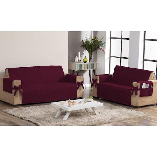 Capa De Sofá Matelada 2 E 3 Lugares Com Porta Objetos Vinho
