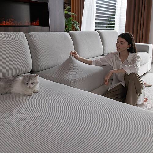 OHSIO Capas de sofá seccionais, resistentes ao desgaste, elásticas, laváveis e macias, capas de almofada de sofá antiderrapantes para animais de estimação (1 almofada de sofá grande, cinza claro) - Função exclusiva: o tecido utilizado nesta capa de sofá não absorve água por cerca de 10 segundos. Você pode usar este tempo para limpar, economizando tempo na limpeza e substituição. A capa de sofá em forma de l também protege seu sofá de manchas, sujeira, pelos de animais de estimação e desgaste geral - Design antiderrapante: a borda inferior da capa de almofada de sofá é costurada com laços elásticos grossos, que se prendem firmemente em sofás de couro e tecido sem enrolar, amassar, deslocar ou escorregar. Instalação e remoção também são muito fáceis e convenientes, uma pessoa pode terminar em 3 minutos - Amplamente utilizada: esta capa de sofá mágica lavável pode ser usada como capa de almofada de assento de sofá, capa de almofada de cadeira de jantar, capa de almofada de assento de acampamento e capa de sofá ao ar livre. A capa de sofá listrada simples pode ser combinada com a maioria dos diferentes estilos de móveis e decorações para deixar sua casa nova - Fácil de limpar: a capa do sofá para cães é fácil de limpar e manter, lavável na máquina a cerca de 30 graus Celsius, recomenda-se detergente neutro, não use alvejante ou passe a ferro. Se estiver manchado, basta lavar a peça suja. Perfeito para famílias com crianças e cães - Tecido elástico de alta qualidade: a capa de sofá para sofá é feita de 95% poliéster e 5% elastano, o tecido é grosso, macio, resistente a rugas, durável e altamente elástico, adequado para almofadas quadradas regulares, almofadas em forma de T e almofadas em forma de L (Observação: devido a diferenças nas telas do dispositivo, as cores reais podem variar ligeiramente das imagens)