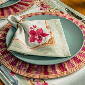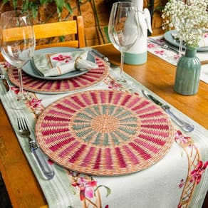 As capas para sousplat são produzidas em tecido durand, uma tecnologia que proporciona riqueza de detalhes na estampa e visual elegante, além da durabilidade e resistência a altas temperaturas.