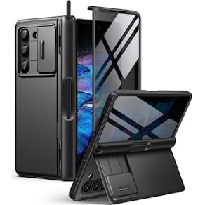 - [Proteção total e capa de câmera deslizante] Os designs da capa frontal e traseira da capa Z Fold 5 oferecem ao telefone absorção de choque superior e resistência a impactos. A capa com uma capa de câmera deslizante com travas fixas em ambos os lados não desliza livremente, você pode deslizar facilmente a capa da lente para a esquerda e para a direita para melhorar a proteção da lente da câmera, proteger melhor sua privacidade e lente