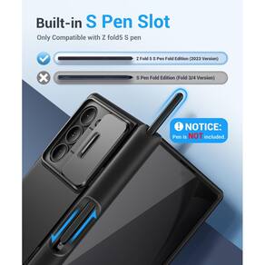 - [Suporte de caneta S e proteção de dobradiça] A capa para Galaxy Z Fold 5 possui uma dobradiça completa com um suporte embutido para S Pen, facilitando o uso da S Pen sempre que você precisar, e o entalhe personalizado na capa da dobradiça robusta e precisa torna rápida e fácil colocar ou tirar a S Pen, evitando que ela se perca, e fornecerá proteção ainda melhor para sua S-Pen, para que você possa aproveitar o rabisco instantâneo bling fun of the S Caneta onde quer que você vá (AVISO: caneta S não incluída)