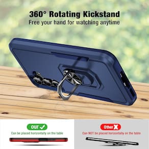 - 👍?Design de suporte giratório de 360°? A capa para Samsung Galaxy A35 5G possui um suporte de metal embutido que pode ser facilmente girado 360°, liberando suas mãos e proporcionando conveniência para assistir a vídeos. Além disso, a capa inclui uma placa magnética de metal para fixação em suportes magnéticos de carro.