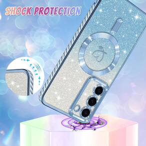 Capa transparente com glitter, suporte magnético Magsafe, proteção para câmera e cantos à prova de choque.Acabamento do material