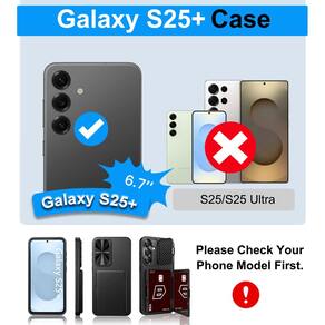 Aviso: ?Esta capa de celular é compatível apenas com Samsung Galaxy S25+ (Plus) (6,7 polegadas), lançado em 2025. Aviso 1: Esta capa para Samsung Galaxy S25 Plus não é compatível com outras séries Samsung antigas. Aviso 2: a capa carteira para Samsung Galaxy S25 Plus não suporta carregamento sem fio. Se você tiver alguma dúvida sobre esta capa para Samsung S25 Plus, a qualquer momento. Marcadores que você precisa saber: ?Esta capa para Galaxy S25 Plus é construída em um porta-cartões que pode armazenar de 4 a 5 cartões no máximo, para que você possa usá-la como uma capa carteira para manter seus cartões à mão. Diminua o seu bolso! ?Esta carteira para Galaxy S25+ Plus pode ter um espelho HD no compartimento para cartões, o que permite que você verifique seu visual a qualquer momento. ?Esta capa carteira para Samsung S25+ Plus com porta-cartões tem uma capa de metal para câmera que oferece proteção completa à câmera como você desejar, e você pode abri-la como um suporte para soltar sua mão ao assistir aos vídeos. ?Esta capa para Samsung S25 Plus é construída para proteção contra quedas de nível militar, que é resistente, à prova de choque para proteção diária. ?Esta capa minimalista para celular Samsung Ggalaxy 25 Plus com protetor de câmera é multifuncional e prática para facilitar sua vida. ? Esta capa carteira para Samsung S25 Plus com suporte para câmera é para homens e mulheres. Capa de celular BXYJY para Samsung Galaxy S25 Plus apresentada em: ? Suporte de cartão embutido e espelho que também pode ser utilizado como carteira. ?Proteção contra quedas de nível militar. ?Capa de câmera embutida, bem como o suporte.?Revestimento fosco, aparência elegante requintada. ?Qualidade premium.?Robusto, rígido e à prova de choque. - ??Compatibilidade e serviço precisos para Samsung Galaxy S25+ (Plus)?Esta capa carteira é compatível apenas com Samsung Galaxy S25+ (Plus) 5g (6,7 polegadas, 2025). Não serve para Samsung Galaxy S25/S25 Ultra e outras séries antigas). Confirme o modelo do seu telefone antes de fazer o pedido. Se você tiver alguma dúvida ou problema de qualidade com a capa carteira para celular Samsung S25 Plus, a qualquer momento. Aviso: não é compatível com carregamento sem fio - ??Mantenha seus cartões à mão. Ajuste o seu bolso!?Nossa capa carteira para Samsung S25 Plus é construída em um porta-cartões com espelho que pode armazenar com segurança cerca de 4 a 5 cartões de acordo com a espessura (ID/cartões de crédito/etc. ), ou algumas folhas de dinheiro para substituir suas carteiras volumosas para conveniência ao sair no dia a dia. Além disso, incorporamos um espelho HD no porta-cartões para verificar sua aparência e ajustar sua maquiagem a qualquer momento. Extraordinariamente conveniente e seguro para sua viagem - ??Proteja o que é importante! Capa protetora para câmera?Design inovador com um protetor de câmera de metal e bordas elevadas de 2 mm ao redor da câmera, a capa para BXYJY Galaxy S25+ Plus com porta-cartões oferece proteção total para a lente traseira para evitar arranhões e quedas. Chega de se preocupar em danificar a lente da câmera e proteger sua privacidade - ??Solte suas mãos! Suporte inovador para câmera?A capa de celular para Samsung S25 Plus tem uma função de suporte oculta quando você abre a capa da câmera que é ajustável e resistente sem adicionar nenhum volume, o que pode manter seu telefone na vertical ou na horizontal como você deseja soltar suas mãos. Se você estiver assistindo programas de TV ou conversando por vídeo, esta capa para Samsung Galaxy S25+ (Plus) com suporte oferece o ângulo de visualização perfeito com base em considerações ergonômicas para garantir o conforto de visualização ideal - ??Sem medo de quedas! Proteção robusta contra quedas de grau militar: feita de policarbonato fosco e amortecedor de TPU macio, esta capa BXYJY para Samsung Galaxy S25+ Plus com capa para câmera também é equipada com um airbag atualizado para absorção de choque em todos os cantos, proteção de borda elevada de 2 mm para tela e câmera e forro interno de microfibra para suportar choques e quedas internas, cuja estrutura total destaca a melhor solução de choque da capa para evitar quedas inesperadas, arranhões e impactos