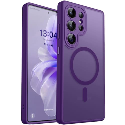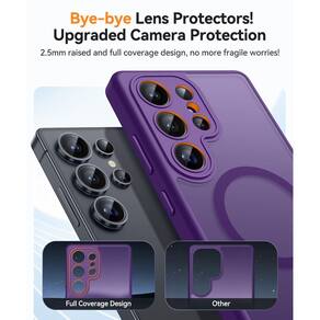CapaCANSHN Cobertura total projetada para Samsung Galaxy S25 Ultra (2025) [proteção total da câmera] [compatível com Magsafe] Capa protetora traseira fosca translúcida para celular, roxo escuro