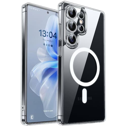 CANSHN Cobertura total projetada para Samsung Galaxy S25 Ultra (2025) [proteção total da câmera] [compatível com Magsafe], transparente - Ajuste perfeito e serviço confiável: projetada especificamente para o Samsung Galaxy S25 Ultra, esta capa se encaixa perfeitamente em cada curva, botão e recorte, garantindo um ajuste perfeito e desempenho confiável - Proteção aprimorada da câmera: a capa oferece cobertura total para a câmera com uma borda elevada de 2,5 mm ao redor da lente, oferecendo proteção abrangente sem comprometer a qualidade da foto - Conectividade magnética potente: compatível com carregadores sem fio MagSafe e Qi, esta capa se fixa com segurança a acessórios magnéticos como carteiras e suportes de carro, garantindo uma conexão estável mesmo durante a rotação ou movimento - Transparente e antiamarelamento: feita de TPU e PC de alta qualidade, esta capa mostra a beleza autêntico do seu telefone. O revestimento nano antioxidante resiste a 99,9% do amarelamento causado por raios UV e suor - Resistência superior a quedas: construída a partir de material TPU espesso e à prova de choque, a capa aumenta a resistência a quedas. Cada canto possui almofadas de ar que absorvem impactos para maior proteção