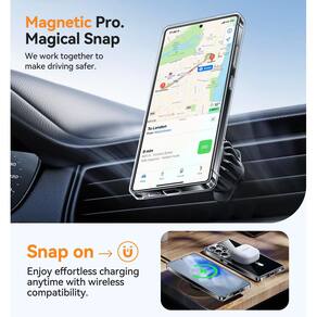 Compatível com carregadores MagSafe e Qi, revestimento antiamarelamento, almofadas de ar nos cantos para absorção de impactos.Características