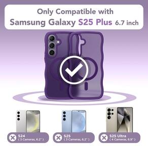 CapaCAPRARO Capa para Samsung Galaxy S25 Plus para mulheres e meninas, atualizada [proteção da câmera] [compatível com MagSafe] Capa de telefone fosca translúcida ondulada fofa para Samsung S25 Plus - ?Compatibilidade e embalagem?Projetado especificamente para Samsung Galaxy S25 Plus 5G de 6,7 polegadas. Verifique o tamanho do modelo do telefone antes de comprar. O pacote inclui 1 x capa magnética S25 Plus e 1 x protetor de tela; - ?Bloqueio magnético super forte? Com ímãs N52 poderosos integrados, esta capa para Galaxy S25 Plus é perfeitamente compatível com carregadores MagSafe e outros carregadores sem fio Qi. Ela também se conecta firmemente a outros acessórios magnéticos como carteiras magnéticas, carregadores portáteis e suportes de carro, garantindo uma conexão segura e estável mesmo durante a rotação ou movimento; - ?Design encaracolado translúcido fosco e bonito com moldura ondulada?A capa de celular fosca translúcida para Samsung Galaxy S25 Plus combina durabilidade e estilo perfeitamente. Possui uma moldura de TPU flexível e uma parte traseira rígida de policarbonato, com um revestimento fosco que proporciona uma sensação de toque sedoso e é antiderrapante, antiimpressões digitais, fácil de limpar. Lindo design ondulado encaracolado, oferecendo uma variedade de cores para se adequar ao seu estilo pessoal; - ?Proteção de câmera atualizada?Nossa capa para Samsung S25 Plus possui uma proteção atualizada para a câmera, com uma borda elevada de 0,11 mm ao redor da lente. Oferece proteção abrangente para a lente sem afetar a fotografia; - ?Excelente proteção contra quedas de nível militar?A capa para celular CAPRARO Samsung Galaxy S25 Plus é feita de material TPU espesso à prova de choque e possui airbags de 360° em todos os 4 cantos, o que pode dispersar efetivamente o impacto violento quando o telefone cai e colide;