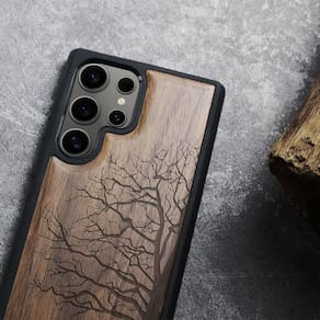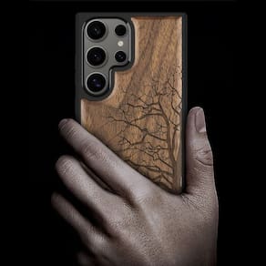 Feita de madeira natural com suporte de TPU macio, leve e protetora, compatível com carregadores sem fio QI padrão e películas protetoras.Acabamento do material
