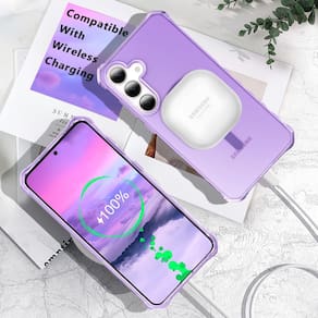 CapaCaselovely Capa magnética para Samsung Galaxy S25 [proteção contra quedas de grau militar] [Forma da moldura ondulada] Capa fina fosca para S25 de 6,2 polegadas, roxa - [Toque aveludado e borda ondulada] A capa para Samsung Galaxy S25 é feita com TPE e TPU de ponta, incorporando um novo revestimento aveludado. A parte traseira translúcida revela e até melhora a beleza autêntico do seu telefone. E a parte traseira de policarbonato e as bordas de borracha flexíveis trazem mais boa aderência à capa de celular que você usa. - [Super Absorção Magnética] Com ímã poderoso integrado, esta capa de celular para Samsung S25 é compatível com a maioria dos acessórios, como carregadores sem fio, suportes magnéticos para carros, bateria magnética, carteira magnética e assim por diante. O poderoso ímã se encaixa perfeitamente com o Samsung Galaxy S25, proporcionando uma experiência mágica de fixação e carregamento sem fio mais rápido, e não cai facilmente. - [Proteção de grau militar certificada] A capa para celular Samsung Galaxy S25 garante a segurança do telefone através de várias estruturas de amortecimento, incluindo silicone macio e resistente, airbags internos à prova de choque, proteção total da lente da câmera e parte traseira rígida do PC, permitindo suportar mais de 5.000 quedas de alturas de 2,5 m. As bordas elevadas de 1,2 mm e 1,5 mm evitam que a câmera e a tela sejam arranhadas. Evita reparos caros e alcança um equilíbrio ideal entre estilo e proteção. - [Ajuste confortável e detalhes precisos] Todos os botões e recortes da capa fina para Samsung S25 se alinham perfeitamente com o telefone e não adicionam volume desnecessário. A abertura precisa da lente da câmera não apenas protege com precisão as lentes caras, mas também não afeta a clareza da foto. O design ergonômico exclusivo para botões faz você se sentir muito mais fácil de pressionar com uma sensação sólida de clique e um bom feedback. - [Compatibilidade] Esta capa serve para Samsung Galaxy S25. Se tiver problemas, através do Centro de mensagens da Amazon
