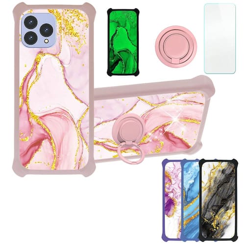 Capa compatível com capa de telefone CUBOT P80 [com protetor de tela de vidro temperado] [PC rígido + silicone macio] [suporte de anel] [brilho dourado+luminoso] JSF-FDL
