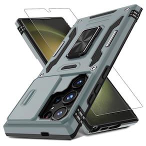 Capas para Samsung Galaxy S25 Ultra. O pacote inclui: 1 capa para celular Galaxy S25 Ultra, 1 protetor de tela para Galaxy S25 Ultra, 1 kit de limpeza Característica: 1. A capa S25 Ultra é a opção exclusiva para você. Certificada pelo padrão militar 2. A capa deslizante também pode proteger a lente, esta capa possui duas barras de proteção de aço inoxidável na parte traseira para evitar danos externos e resultando em peeling de tinta 3 A capa de celular para S25 Ultra fina com a capa deslizante da câmera; ela se combina para dar a você a proteção mais abrangente para o seu dispositivo caro - Capa protetora com capa deslizante para câmera especialmente projetada para Samsung Galaxy S25 Ultra de 6,9 polegadas (lançado em 2025). Não serve para outro dispositivo! O recorte preciso se encaixa em cada botão, câmera, alto-falantes e portas com precisão, fácil de pressionar e acessar - Proteção de nível militar: capa à prova de choque de camada dupla feita de TPU + PC. Esta estrutura de almofada multicamadas fornece proteção adicional de absorção de choque. Certificado pelo padrão militar, sobreviveu a mais de 8.000 testes de queda de até 2,5 m! O interior de TPU flexível absorve impactos internos. Além disso, o exterior com quatro cantos reforçados pode absorver efetivamente o impacto da queda - Proteção para câmera e tela: a capa deslizante da câmera protege a lente da câmera da capa do telefone contra arranhões e arranhões. As bordas da tela de 1,8 mm sutilmente aprimoradas e a película de vidro fornecem proteção extra e abrangente. Garanta que todos os aspectos do seu telefone estejam protegidos exclusivamente com - Suporte de anel magnético: capa multifuncional recentemente atualizada, suporte de anel integrado e patch de metal. O anel giratório oferece dois modos de suporte para visualização horizontal vertical, para que possa ser utilizado como suporte de anel e soltar sua mão ao assistir a vídeos. O patch de metal se prende facilmente ao suporte magnético do carro, muito conveniente durante o tempo de condução para navegação. Você vai adorar como é conveniente com funções tão poderosas - O que você recebe: o pacote vem com 1 capa de celular e 1 pacote de protetor de tela de vidro temperado. Aviso: Devido ao anel de metal na parte de trás, esta capa NÃO funcionará com função de carregamento sem fio.