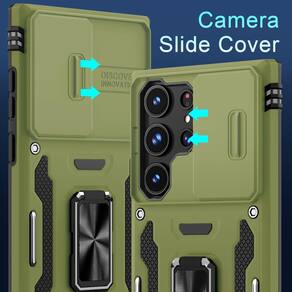 Capas para Samsung Galaxy S25 Ultra. O pacote inclui: 1 capa para celular Galaxy S25 Ultra, 1 protetor de tela para Galaxy S25 Ultra, 1 kit de limpeza Característica: 1. A capa S25 Ultra é a opção exclusiva para você. Certificada pelo padrão militar 2. A capa deslizante também pode proteger a lente, esta capa possui duas barras de proteção de aço inoxidável na parte traseira para evitar danos externos e resultando em peeling de tinta 3 A capa de celular para S25 Ultra fina com a capa deslizante da câmera; ela se combina para dar a você a proteção mais abrangente para o seu dispositivo caro - Capa protetora com capa deslizante para câmera especialmente projetada para Samsung Galaxy S25 Ultra de 6,9 polegadas (lançado em 2025). Não serve para outro dispositivo! O recorte preciso se encaixa em cada botão, câmera, alto-falantes e portas com precisão, fácil de pressionar e acessar - Proteção de nível militar: capa à prova de choque de camada dupla feita de TPU + PC. Esta estrutura de almofada multicamadas fornece proteção adicional de absorção de choque. Certificado pelo padrão militar, sobreviveu a mais de 8.000 testes de queda de até 2,5 m! O interior de TPU flexível absorve impactos internos. Além disso, o exterior com quatro cantos reforçados pode absorver efetivamente o impacto da queda - Proteção para câmera e tela: a capa deslizante da câmera protege a lente da câmera da capa do telefone contra arranhões e arranhões. As bordas da tela de 1,8 mm sutilmente aprimoradas e a película de vidro fornecem proteção extra e abrangente. Garanta que todos os aspectos do seu telefone estejam protegidos exclusivamente com - Suporte de anel magnético: capa multifuncional recentemente atualizada, suporte de anel integrado e patch de metal. O anel giratório oferece dois modos de suporte para visualização horizontal vertical, para que possa ser utilizado como suporte de anel e soltar sua mão ao assistir a vídeos. O patch de metal se prende facilmente ao suporte magnético do carro, muito conveniente durante o tempo de condução para navegação. Você vai adorar como é conveniente com funções tão poderosas - O que você recebe: o pacote vem com 1 capa de celular e 1 pacote de protetor de tela de vidro temperado. Aviso: Devido ao anel de metal na parte de trás, esta capa NÃO funcionará com função de carregamento sem fio.