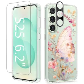 CapaGVIEWIN Compatível com Samsung Galaxy S25 - Compatibilidade: Esta capa é compatível apenas com Samsung Galaxy S25 (6,2 polegadas, versão 2025). Verifique o modelo do seu telefone antes de fazer o pedido (consulte a imagem 2). O pacote inclui 1 capa de telefone e 1 protetor de tela e 1 protetor de lente de câmera. Aviso: não compatível com S25+ - Proteção à prova de choque de grau militar: composta de parte traseira rígida de policarbonato e borda macia de TPU, a capa é construída com quatro cantos salientes que absorvem efetivamente o choque em quedas acidentais e batidas. As molduras elevadas protegem a tela e a colisão da câmera contra arranhões e fricção diários. O protetor de vidro de dureza 9H incluído dá mais segurança para o seu novo telefone - Estampa floral chique e não amarela: com um design floral elegante, esta capa transparente combina elegância com funcionalidade. Feita de materiais transparentes e anti-amarelamento, resiste à gordura e à descoloração ao longo do tempo, garantindo que seu telefone permaneça fresco e atraente para uso a longo prazo - Recortes Precis e leve: fácil acesso a alto-falantes, botões, sensores, câmeras e outros recursos, e os botões laterais são responsivos e clicáveis; o design fino e leve oferece uma aderência confortável e cabe facilmente no seu bolso, tornando-o perfeito para uso em movimento - Suporte confiável e garantia de serviço: esta capa suporta carregamento sem fio, suporte para carro e suporte de anel de celular; Se houver algum problema com o produto, como um modelo de telefone incompatível, não hesite em entrar em contato conosco pelo Centro de mensagens da Amazon
