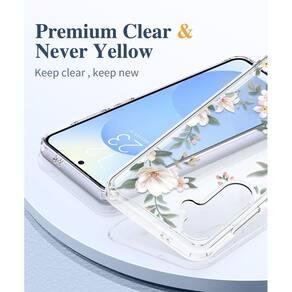 CapaGVIEWIN Capa para Samsung Galaxy S25 Plus com protetor de tela e protetor de lente de câmera, [não amarela] Capa de telefone feminina transparente floral rígida à prova de choque para S25 Plus de 6,7 polegadas (magnólia/branca) - Compatibilidade: esta capa é compatível apenas com Samsung Galaxy S25 Plus (6,7 polegadas, versão 2025); alinhamento preciso permite fácil acesso aos botões, alto-falantes e porta de carregamento; o pacote inclui uma capa floral transparente, 1 película de vidro temperado, 1 protetor de lente; confirme o modelo antes de fazer o pedido (veja a imagem 2) - Padrões florais claros e chiques: a capa apresenta estampas florais elegantes que dão ao seu telefone uma aparência única e atraente; o design transparente mostra a beleza autêntico do seu dispositivo; Criado com tecnologia de impressão avançada, o padrão permanece vibrante e resistente ao desbotamento ao longo do tempo - Proteção de nível militar 3 em 1 de 360°: composta por uma parte traseira rígida de policarbonato e uma moldura de TPU macio, esta capa absorve choques e resiste a quedas de até 3 metros; as molduras elevadas protegem a tela e a lente da câmera de arranhões; inclui um protetor de tela de vidro temperado 9H e um protetor de lente de câmera para fornecer proteção abrangente para o seu telefone - Aderência segura e não amarela: Feita com materiais premium e revestimento antiamarelamento aprimorado, esta capa resiste ao suor, raios UV e manchas que podem manter a clareza durante o uso; seu design fino e leve e borda de TPU macio fornecem uma aderência segura e uso adequado para o bolso - Suporte confiável: suporta carregamento sem fio e é compatível com a maioria dos acessórios de telefone, como suportes de anel e suportes de carro; Para qualquer problema, como incompatibilidade de modelo ou expectativas não atendidas, através do Centro de mensagens da Amazon para assistência imediata