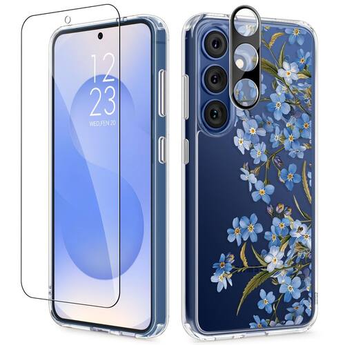 CapaGVIEWIN Capa para Samsung Galaxy S25 Plus com protetor de tela e protetor de lente de câmera, [não amarela] Capa de telefone feminina transparente floral rígida à prova de choque para S25 Plus de 6,7 polegadas (Aconite/Azul) - Compatibilidade: esta capa é compatível apenas com Samsung Galaxy S25 Plus (6,7 polegadas, versão 2025); alinhamento preciso permite fácil acesso aos botões, alto-falantes e porta de carregamento; o pacote inclui uma capa floral transparente, 1 película de vidro temperado, 1 protetor de lente; confirme o modelo antes de fazer o pedido (veja a imagem 2) - Padrões florais claros e chiques: a capa apresenta estampas florais elegantes que dão ao seu telefone uma aparência única e atraente; o design transparente mostra a beleza autêntico do seu dispositivo; Criado com tecnologia de impressão avançada, o padrão permanece vibrante e resistente ao desbotamento ao longo do tempo - Proteção de nível militar 3 em 1 de 360°: composta por uma parte traseira rígida de policarbonato e uma moldura de TPU macio, esta capa absorve choques e resiste a quedas de até 3 metros; as molduras elevadas protegem a tela e a lente da câmera de arranhões; inclui um protetor de tela de vidro temperado 9H e um protetor de lente de câmera para fornecer proteção abrangente para o seu telefone - Aderência segura e não amarela: Feita com materiais premium e revestimento antiamarelamento aprimorado, esta capa resiste ao suor, raios UV e manchas que podem manter a clareza durante o uso; seu design fino e leve e borda de TPU macio fornecem uma aderência segura e uso adequado para o bolso - Suporte confiável: suporta carregamento sem fio e é compatível com a maioria dos acessórios de telefone, como suportes de anel e suportes de carro; Para qualquer problema, como incompatibilidade de modelo ou expectativas não atendidas, através do Centro de mensagens da Amazon para assistência imediata