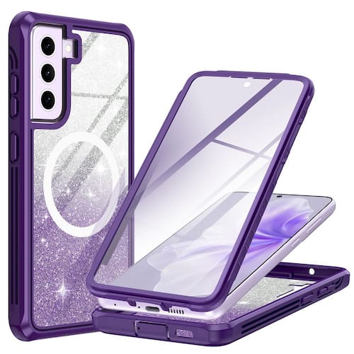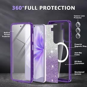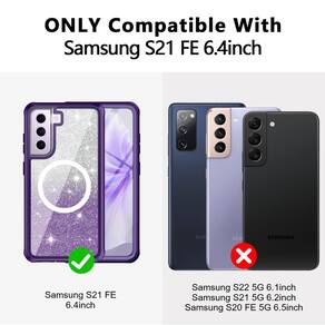 Capa compatível com MagSafe Capa protetora de corpo inteiro à prova de choque para meninas e mulheres na moda - Compatibilidade: compatível apenas com Samsung Galaxy S21 FE. Não é compatível com outros modelos. Verifique o tipo de modelo antes de comprar esta capa para celular Samsung Galaxy S21 FE. Inclui uma peça de glitter gradiente. Você pode remover as peças de glitter gradiente quando quiser uma capa transparente simples, como quiser. - ?Protetor de tela de vidro 9H embutido?: esta capa para Galaxy S21 FE com protetor de tela de vidro temperado 9H integrado protege a tela do seu telefone de arranhões e rachaduras, fazendo você aproveitar o toque sensível sem bolhas. A capa frontal integrada oferece excelente proteção para o telefone, mantendo a sensibilidade da tela autêntico enquanto evita danos causados por arranhões e impactos. - ?Compatível com todos os acessórios MagSafe?: esta capa para Samsung Galaxy S21 FE tem um anel magnético integrado que se alinha perfeitamente e trava no lugar rapidamente, tornando o carregamento sem fio mais rápido e fácil do que nunca. Alinha-se automaticamente com o carregador MagSafe, garantindo um carregamento rápido sem a necessidade de remover a capa; compatível com vários outros acessórios MagSafe, como carregadores sem fio, suportes para carro e porta-cartões magnéticos. Você pode desfrutar de carregamento rápido em casa ou na viagem. - ?Proteção total de corpo e câmera de 360°?: esta capa para Galaxy S21 FE oferece cobertura frontal e traseira completa, incluindo quatro cantos antichoque, molduras elevadas de tela e câmera e laterais antiderrapantes; cantos acolchoados criam maior segurança durante quedas e quedas; camada dupla oferece proteção total de 360 graus. O design perfeito de proteção da câmera protege a câmera do seu telefone Samsung Galaxy S21 FE de arranhões, colisões, arranhões e impactos. ; permitindo que você aproveite Qualidade de imagem autêntico segura. - ?Ajuste perfeito?: recortes precisos garantem fácil acesso a todos os botões/câmeras e são fáceis de segurar. O ajuste fino e o design de borda antiderrapante garantem que o seu Samsung Galaxy S24 não seja fácil de deslizar e caiba confortavelmente no seu bolso ou bolsa.