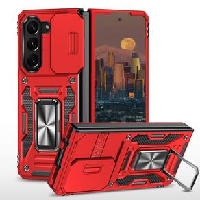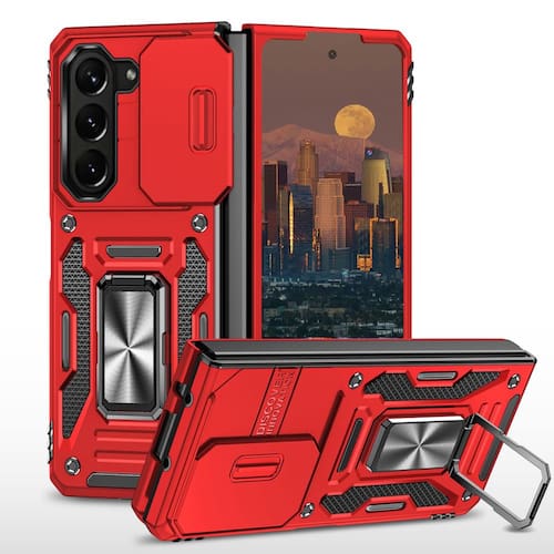 Capa para Samsung Galaxy Z Fold 5, resistente a quedas de grau militar Z Fold 5 com suporte magnético para carro, capa Z Fold 5 e capa deslizante para câmera (vermelha)