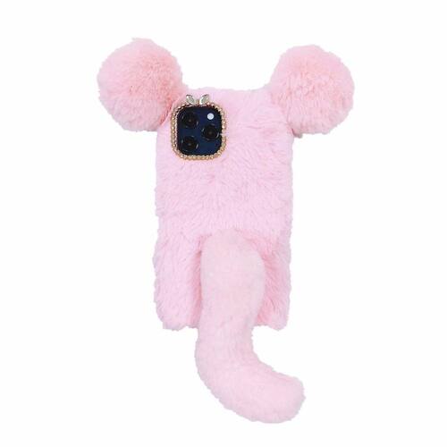 Capa de telefone peludo de coelho de pelúcia rosa (tamanho único)