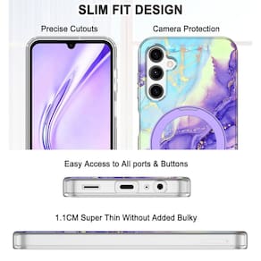 CapaDesign elegante de mármore: feito de PC resistente a impactos, garante clareza de longa duração, permite manter a aparência autêntico do telefone sem perder sua própria personalidade. Feito de uma técnica de impressão exclusiva, esses padrões não desbotam, desbotam ou mancham - Compatibilidade: compatível apenas com Samsung Galaxy A14 5G de 6,6 polegadas. Não é compatível com nenhum outro modelo de telefone. É uma ótima escolha para mulheres, meninas e amigas em dias especiais - Design magnético mais forte: design de anel de sucção magnética forte, compatível com acessórios MagSafe, suporta carregamento sem fio de alta velocidade e conecta-se com segurança a acessórios magnéticos como carteiras, carregadores portáteis e suportes de carro, mantendo uma conexão estável durante a rotação ou movimento - Design elegante de mármore: feito de PC resistente a impactos, garante clareza de longa duração, permite manter a aparência autêntico do telefone sem perder sua própria personalidade. Feito de uma técnica de impressão exclusiva, esses padrões não desbotam, desbotam ou mancham. O suporte integrado dá a você a conveniência de assistir a vídeos e filmes com as mãos livres com conforto e estabilidade desejados - Proteção total do corpo: a capa é composta de policarbonato resistente a alto impacto e capa de borda de TPU macio. Sua estrutura pode absorver e desviar impactos que bloqueiam sujeira e poeira. Quatro ângulos anticolisão podem fornecer boa proteção à prova de choque e anti-queda. Material de qualidade garante grande durabilidade - Design preciso e se encaixa perfeitamente: recortes precisos garantem fácil acesso a todos os botões, alto-falantes e compartimento do carregador sem adicionar volume. Botões macios e sensíveis com boa resposta, são fáceis de pressionar. Se você tiver algum problema de qualidade com nossas capas, por e-mail da Amazon. Estamos comprometidos em fornecer a você os melhores produtos e serviços