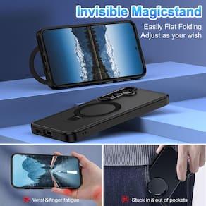 - Suporte magnético invisível: feito de alumínio de nível aeroespacial, o suporte é prático e multifuncional. Pode ser ajustada entre 40° e 120° para uma experiência de visualização estável e sem usar as mãos, e funciona como um suporte de anel para maior conveniência. Com estilo de vida N+1, pode ser utilizado para assistir TV, trabalhar em reuniões ou conversar por vídeo.