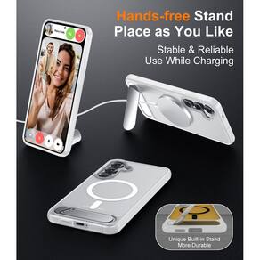 Temdan Capa magnética para Samsung Galaxy S25 Plus, [Suporte inovador] [Proteção contra quedas de grau militar] [Antiderrapante] [Fosco translúcido] à prova de choque para Galaxy S25 Plus 17.0 cm 2025 - Fosco Transparente - ?Super magnético?O anel magnético super forte integrado pode ser conectado firmemente a acessórios compatíveis com MagSafe, como carregador magnético, carteira, bateria, suporte para carro, etc. O anel magnético perfeitamente alinhado torna o carregamento sem fio mais rápido e seguro, aproveite o carregamento rápido a qualquer hora, em qualquer lugar. Além disso, o anel magnético incorporado passa por milhares de horas de testes sob alta pressão, é seguro e nunca cai ou fratura - ?Suporte de mãos livres inovador?Design angular, mais estável, ângulo visual mais razoável. Ela adota rolamentos não indutivos e design de fivela magnética, repetidos testes de dobra, suporta flutuação e suporte estáveis, aproveite a conveniência da vida - ?Confiável à prova de quedas?A nova capa à prova de choque projetada para Samsung Galaxy S25 Plus foi testada mais de 2.500 vezes e caiu de todos os ângulos sem danificar! Além disso, esta capa oferece proteção abrangente para o seu telefone, a borda da tela elevada de 1,5 mm e a borda da câmera elevada de 2,0 mm mantém seu telefone mais seguro, protege seu dispositivo caro de arranhões inesperados, quedas, batidas, manchas ou qualquer dano - ?Exclusivo e precisamente projetado?Capa projetada para Samsung Galaxy S25 Plus feita de material fosco translúcido premium para oferecer uma sensação de toque sedoso. O design antiderrapante na lateral da capa oferece resistência e tração eficazes. Além disso, graças à tecnologia anti-impressão digital, você pode limpá-la facilmente com apenas um pano suave para tornar todas as impressões digitais invisíveis, proporcionando uma excelente experiência de uso - ?Compatível e serviço personalizados?Esta capa recentemente atualizada é compatível apenas com Samsung Galaxy S25 Plus de 6,7 polegadas lançado em 2025. Fornecemos serviço de substituição em 365 dias para produtos defeituosos, se você tiver alguma dúvida, você obterá uma solução eficaz
