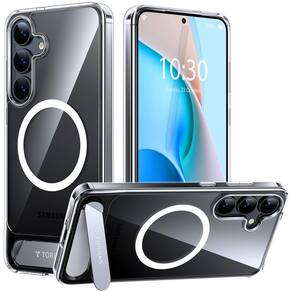 CapaCapa para celular - TORRAS Líder da capa magnética: desde 2022, criamos ótimas capas magnéticas para usuários Samsung. Nossa capa para Samsung Galaxy S25 usa ímãs de neodímio de grau N52 com tecnologia exclusiva MegaMag-Boosted Magnetism para tornar a atração magnética extremamente poderosa. Uma placa fina e plana em forma de suporte oferece uma experiência de inclinação multiângulo e mãos livres, enquanto seu magnético integrado garante carregamento sem fio ininterrupto - Experiência de carregamento sem fio: Desfrute de estabilidade magnética confiável com uma atração 60% mais forte em comparação com outras soluções. Com força magnética poderosa de 18N, seu novo S25 pode aderir a acessórios magnéticos. Além disso, o forte recurso magnético da capa S25 também garante uma experiência eficiente de carregamento sem fio e um suporte seguro no suporte do seu carro - Diamante transparente e antiamarelamento: a parte traseira é feita de materiais de PC premium Bayer, apresentando um nano-revestimento na superfície que resiste efetivamente a manchas e suor. Testes de laboratório mostram que a duração antiamarelamento da nossa capa transparente para Samsung S25 excede a das capas transparentes comuns em mais de 6 vezes. Ela não apenas evita o amarelamento, mas também possui uma taxa de transmissão de 99%, mostrando a cor autêntico do telefone com total clareza - Proteção certificada de grau médio: esta capa é a melhor garantia para o seu novo telefone, libertando-se de choques e quedas inesperados. A estrutura de amortecimento de ar TORRAS X-Shock e o material TPU altamente resiliente oferecem proteção sólida para cada borda do seu telefone. A capa para Samsung S25 possui bordas elevadas de 1,0 mm para a moldura da tela e 1,5 mm para a câmera, protegendo o design angular do seu telefone - Um suporte durável integrado para suporte em vários ângulos: Certificada por mais de 30.000 testes rigorosos de dobra, a capa S25 com suporte é construída com suporte exclusivo de aço inoxidável integrado para maior durabilidade. Os modos vertical e horizontal flexíveis permitem que você assista confortavelmente a vídeos ou conduza reuniões de negócios. Este suporte pode se misturar em todos os cenários da sua vida - TORRAS Cuidados e detalhes delicados: esta capa de telefone com suporte é apenas para Samsung Galaxy S25. Com botões táteis e recortes projetados com precisão, cada detalhe é meticulosamente refinado para melhorar sua experiência com o Galaxy. Se você recebeu o modelo errado, a capa S25 danificada ou qualquer problema do produto, com nosso suporte 24 horas por dia, 7 dias por semana através do Centro de mensagens da Amazon. Desfrute de resposta rápida e garantia de 180 dias garantida