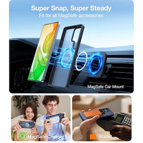 - [Ímãs superfortes pioneiros] Equipada com os mais avançados ímãs de neodímio N56SH e tecnologia MegaMag, esta capa S25 Ultra oferece uma forte força magnética 18N. Você experimentará um acessório magnético sem costura, tornando seu telefone perfeitamente adequado para acessórios magnéticos como suportes de carro, carregadores portáteis, carteiras, etc. Observação: os suportes de carro que não têm magnético não servirão para esta capa - como suportes quadrados de carro ou uma placa de metal anexada ao receber o suporte do carro.
