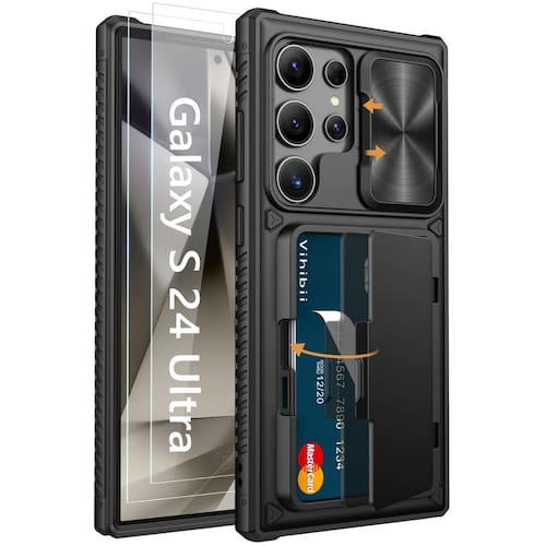 Vihibii Serviço pós-venda de alta qualidade oferece mais conveniência e segurança para a vida digital Buscamos criar capas protetoras para celular mais convenientes e melhores com design inovador e materiais de alta qualidade Parâmetros do produto: Material - PC e silicone Modelos compatíveis - Samsung Galaxy S24 Ultra 5G 6,8 polegadas (lançado em 2024) Tipo de embalagem - Caixa ecológica Características especiais - Suporte para cartão, capa de câmera deslizante Capa para Samsung Galaxy S24 Ultra, oferece proteção de 360 graus para o seu telefone - ?Novo design patenteado?Esta capa carteira é compatível apenas com Samsung Galaxy S24 Ultra 5g de 6,8 polegadas. [Versão atualizada 2024] (verifique o modelo do telefone cuidadosamente antes de comprar. Se você tiver alguma dúvida, . A Vihibii tem uma equipe profissional de design e serviço pós-venda, não importa quando somos responsáveis por nossos produtos e nossos clientes.) - ?HD Sensitive – 2x protetor de tela?O kit inclui 1 capa preta, 2 películas de vidro temperado HD, 1 kit de limpeza. Estes protetores de tela oferecem uma experiência de toque confortável e sensível. Elas também protegem contra arranhões, arranhões e batidas e impedem efetivamente que a tela do telefone diretamente com o chão ao cair, o que reduz bastante o risco de danos à tela. Oferece a proteção mais forte para a segurança do seu telefone - ?Porta-cartão-armazenamento?Há um espaço de armazenamento na parte de trás. De acordo com a espessura do cartão, você pode armazenar com segurança de 4 a 5 cartões ou uma pequena quantia de dinheiro. Esta capa para Galaxy S24 Ultra facilita o transporte de seus cartões de crédito, identidade ou um pouco de dinheiro quando você estiver em movimento, sem uma carteira volumosa. Novas atualizações estruturais, a posição da dobradiça do porta-cartões fica travada no centro da capa do telefone, recusando-se a cair, proteção mais segura para seus cartões e dinheiro. - ?Capa protetora para lente de câmera deslizante?A capa protetora para câmera deslizante recentemente projetada tem 2 mm de espessura e o trilho deslizante é sensível. Quando você não precisar usar a câmera, basta deslizar a capa por um segundo para cobrir a lente da câmera e proteger a lente do seu celular Samsung Galaxy S24 Ultra de arranhões e danos. - ?Proteção contra quedas de nível militar?(1) As bordas da capa são feitas de silicone combinado com o design da estrutura de absorção de choque do airbag nos quatro cantos, resolvendo efetivamente fortes impactos externos e dando ao seu telefone uma verdadeira sensação de segurança. (2) A moldura é ligeiramente mais alta do que a tela em 1,5 mm, impedindo que a tela direto e íntimo com o chão quando o telefone cair pela frente. - ?Fácil de instalar?Nossa película protetora de tela para Samsung Galaxy S24 Ultra vem com um kit de autoalinhamento para um processo de aplicação sem bolhas, evitando o incômodo de alinhamento manual. Você pode aproveitar a conveniência de uma aplicação perfeita que protege seu dispositivo com facilidade.