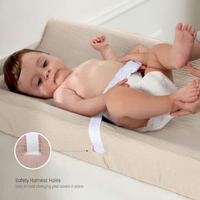 lulumoon Capa para trocador de bebês: Capa de trocador de fraldas de musselina - Lençóis de trocador para meninas e meninos - MACIO E RESPIRÁVEL: Nossas capas de trocador são feitas de 100% algodão musselina. O toque é macio e confortável, o que é muito adequado para peles sensíveis em bebês. O tecido leve e respirável manterá seu bebê fresco e confortável. - Cabe na maioria dos trocadores: as capas de trocador de musselina medem 43,2 x 83,8 cm, bolsos profundos de 17,8 cm se encaixam na maioria dos trocadores de tamanho padrão. Não se preocupe se esta capa de trocador servirá no seu trocador de fraldas. - Segurança: as faixas elásticas ao redor e os orifícios da fivela que acomodam as tiras de segurança podem aplicar rápida e firmemente a capa do trocador na posição apropriada. As capas de trocador ajustadas mantêm seu bebê seguro. - CUIDADO FÁCIL: as capas de trocador de fraldas suportam lavagem na máquina (MAX30 ° C/26.7 °C), secagem em baixa temperatura. Mais macio e confortável após cada lavagem. O design do conjunto garante que você sempre tenha um em suas mãos, o que é conveniente para sua substituição diária e lavagem. - Presente de registro: Estas capas de trocador de bebê requintadamente embaladas são definitivamente um item essencial para o registro do seu bebê. A combinação de cores foi cuidadosamente selecionada por nós, o que pode ser coordenado com a decoração de todos os temas.