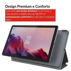 O Escudo de Elegância que o Seu Lenovo M9 Merece Sobre a Marca Lenovo: A Confiança de um Gigante Global Funcionalidades e Benefícios Inegáveis Gatilhos de Comodidade e Segurança : Proteção Total 360 e Material Resistente: Construída com material moderno e robusto, oferece defesa completa para as bordas, traseira e tela contra impactos e quedas. Suporte de Modo Duplo Inteligente: A capa se transforma em um suporte robusto, ideal para assistir a vídeos, videoaulas e conferências, ou para digitar com total conforto e ergonomia característica de Dual Mode Stand . Design Premium e Conforto: Com estilo sem bordas brimless na cor Cinza, a capa mantém a estética fina do Tab M9 e é extremamente confortável na mão para o manuseio diário. Ficha Técnica Completa: Modelo Compatível: Lenovo Tab M9 9 polegadas Tipo de Produto: Capa para Tablet Folio Case Cor Principal: Cinza com detalhes em Prata Material: Acabamento Moderno e Material Resistente Diferenciais: Confortável na Mão, Proteção Total e Suporte de Modo Duplo Dimensões do Produto AxLxP : 222 x 143 x 8 MM Largura: 143 mm Peso do Produto: 0,163kg 163 GR do Fabricante: 12 Meses 1 Ano Aprovações e Certificações: RoHS, REACH Alimentação: Não tem Itens Inclusos na Embalagem Marca: Não Informado