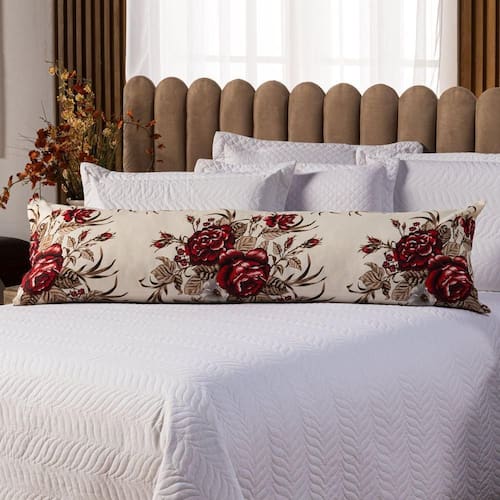 Capa Fronha De Xuxão Travesseiro De Corpo Estampada Avulsa 1,45m X 45cm - Percal 140 Fios 100% Algodão Cor Floral Vermelho