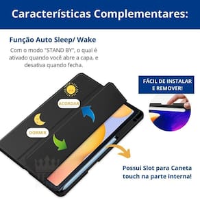 Possui slot para caneta: Esta capa é projetada com um slot para caneta touch que permite fácil acesso e armazenamento de sua caneta;