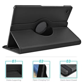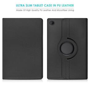 Capa giratória para samsung galaxy tab a8 x200 x205 de 10.5 polegadasCor pretaCompatível apenas com o modelo acima descritoBase giratória para posicionar na horizontal ou verticalElástico para fechamento da tampa frontalCapa leve, durável e fácil de transportarAbertura para câmera, fone de ouvido, carregador e botõesConfeccionada em courinoFotos meramente ilustrativas para demonstrar como o tablet se encaixa.