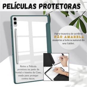 Capa Magnética Acrílico com Slot para Samsung Tab S9 Fe X616 A Capa Magnética Acrílico com Slot para Samsung Tab S9 Fe X616 é a solução perfeita para proteger o seu tablet de quedas e danos. Compatível apenas para o modelo Tab S9 Fe Plus 12.4 polegadas 2023 , essa capa oferece a proteção necessária para o seu dispositivo. Com um design inteligente, a capa possui um slot para caneta, permitindo fácil acesso e armazenamento da sua caneta. Além disso, a parte externa da capa é feita de silicone, proporcionando uma aderência confortável e segura para segurar o seu tablet sem deslizar enquanto carrega. A parte traseira de acrílico não amarela, mantendo a aparência elegante do seu dispositivo por mais tempo. Imagine ter a sua caneta sempre à mão, sem se preocupar em perdê-la. Com a Capa Magnética Acrílico com Slot para Samsung Tab S9 Fe X616, você pode ter certeza de que o seu tablet está protegido e pronto para ser em qualquer lugar, a qualquer momento. Especificações: - Comprimento: 29cm - Largura: 20cm - Altura: 1cm - Peso: 30g - Material interno: camurça - Material externo: silicone - Compatível com Samsung Tab S9 Fe Plus 12.4 polegadas 2023 Conteúdo: - 1x Capa Magnética Proteja o seu tablet com estilo e praticidade com a Capa Magnética Acrílico com Slot para Samsung Tab S9 Fe X616. Garanta já a sua e tenha a tranquilidade de utilizar o seu tablet sem se preocupar com danos e quedas. Atenção: - Compatível apenas para Tab S9 Fe Plus 12.4 polegadas 2023 . - Retire a película traseira na parte do acrílico. 1. Posso usar a capa com película? R: Sim, você pode usar a capa junto com a película sem problemas. A case não interfere no uso da película. 2. É compatível com o Samsung Tab S9 Fe Plus 12.4 2023? R: Sim, a capa é específica para esse modelo e servirá perfeitamente. 3. É compatível com o Samsung Tab S9 Ultra / Samsung Tab S9 Fe 10.9? R: Não, a capa não é compatível com esse modelo. : Garantimos a devolução por arrependimento em até 7 dias, após o recebimento e de 15 dias contra defeitos de fabricação. Marca: Não Informado