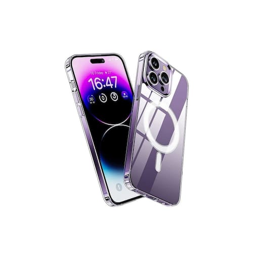Caixa transparente à prova de choque compatível com Magsafe para iPhone 15 Pro Max, fornece bolsas de ar em cada canto, o que permite a absorção de golpes de maneira eficiente. Possui anel magnético que permite usar os carregadores Magsafe sem danificar a capa. Design ergonômico e moderno, material transparente resistente, firme e de longa duração, cobre botões e bordas, fácil acesso ao conector de carregamento.Modelo Compatível