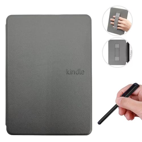 Capa magnética com alça para kindle 12 básico 6.0 + caneta Cor: cinza com revestimento interno de microfibra e toque macio, ela mantém sua tela sem riscos, enquanto o fechamento magnético e as bordas reforçadas garantem uma proteção robusta contra quedas e impactos.
