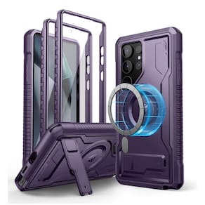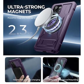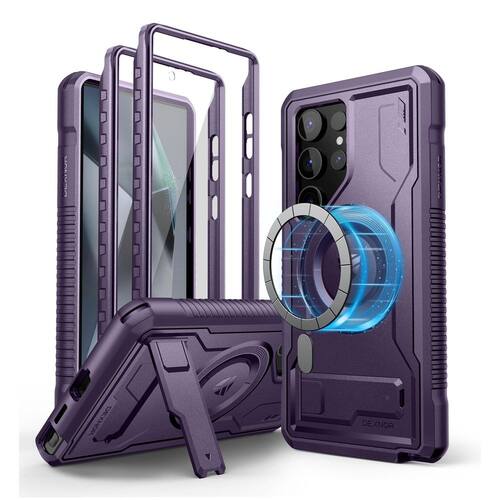Dexnor Capa magnética para Samsung Galaxy S24 Ultra, compatível com Magsafe, 2 molduras frontais e protetor de tela integrado, capa protetora de corpo inteiro resistente à prova de choque com suporte, - ?Ajuste perfeito para Samsung Galaxy S24 Ultra?Projetado especificamente para o Samsung Galaxy S24 Ultra?6,8 polegadas?, vem com recortes precisos para fácil acesso a todas as portas, botões e outras funções. Garante compatibilidade com carregadores sem fio e acessórios MagSafe. O design da estrutura antiderrapante na lateral da capa do telefone oferece antiderrapante e aderência eficazes. - ?Suporte versátil?Desfrute de visualização sem usar as mãos com confiança. Nosso suporte dobrável durável e resistente oferece suporte estável no modo paisagem e retrato, ajustável em 65°. Experimente vários ângulos para o seu conteúdo de vídeo, onde quer que esteja. - ?Compatível com Magsafe?Projetada com 36 peças de ímãs N52 super fortes, esta capa protetora para Samsung Galaxy S24 Ultra oferece alinhamento rápido e preciso com carregadores sem fio, acessórios MagSafe e fixação segura a suportes magnéticos de carro. - ?Proteção de nível militar?Esta capa para Galaxy S24 Ultra projetada para aventuras difíceis, nossa capa de corpo inteiro possui cantos de absorção de choque e bordas elevadas para proteger sua tela e câmera. Esteja você observando as estrelas ou caminhando, tenha certeza de que seu telefone está protegido contra batidas e quedas. - ?Duas opções de moldura frontal?Escolha o seu nível preferido de proteção de tela. A primeira moldura vem pré-instalada com um protetor de tela PET responsivo, oferecendo proteção contra arranhões, poeira e derramamentos. Como alternativa, use a segunda moldura com seu próprio protetor de tela para cobertura personalizada.