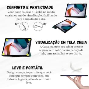 Modo de uso: 1- comece colocando o tablet sobre a capa, de uma leve pressão até que a capa esteja totalmente encaixada.