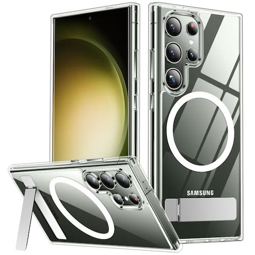 SPIDERCASE Capa magnética para Samsung Galaxy S23 Ultra - ?Capa para S23 Ultra?SPIDERCASE projetada para Samsung Galaxy S23 Ultra 5G 6,8 polegadas versão 2023, não serve para outros modelos, verifique o modelo do seu telefone antes de comprar. O corte preciso do orifício e os botões sensíveis garantem acesso mais fácil a todos os botões e funções. - ?Suporte funcional e invisível?O suporte da capa para Samsung Galaxy S23 Ultra é dobrável, resistente e construído para durar, com suporte prático integrado feito de alumínio de grau aeroespacial leve e sólido, oferecendo uma experiência robusta e flexível no modo retrato, paisagem ou teleconferência. Permite que você obtenha um ângulo de visualização mais confortável. Reduza a frequência de olhar para a tela do telefone para evitar machucar suas costas e pescoço. - ?Magnético super forte?Com um anel magnético integrado que se alinha perfeitamente com carregadores magnéticos, esta capa oferece uma fixação mais forte e velocidade de carregamento mais rápida. Compatível com todos os acessórios magnéticos e carregadores sem fio (como carregador sem fio de carro, carregadores sem fio, carteiras magnéticas, etc.). - ?À prova de choque de grau militar de 3,5 m?Aprovado no teste militar de queda de até 3 m, tem uma parte traseira escovada de policarbonato resistente e amortecedores de borracha flexível que fornecem forte amortecimento para quedas diárias. Airbag poderoso de dispersão de impacto em 360° integrado e tecnologia de canto resistente a impactos de 4 cantos. O design pequeno de bordas de 1,5 mm sobre a câmera e molduras de 1,5 mm sobre a tela evitam poeira e arranhões. - ?Design fino e aderência confortável? Esta capa fina para Samsung Galaxy S23 Ultra traz maior portabilidade e aderência mais firme, fácil de manter limpa, anti-impressões digitais e traz a sensação excepcional de toque sedoso, sem volume e sem derrapagem para caber facilmente no bolso.