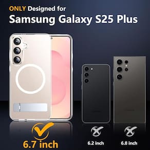 CapaSPIDERCASE Capa magnética para Samsung Galaxy S25 Plus, [3 formas de suporte] [proteção contra quedas de grau militar] com suporte invisível à prova de choque, capa fina para Samsung Galaxy S25 Plus de 6,7 polegadas, transparente - [Capa para S25 Plus] SPIDERCASE projetada para Samsung Galaxy S25 Plus 5G 6,7 polegadas, não serve para outros modelos, verifique o modelo do seu telefone antes de comprar. Recortes precisos e botões sensíveis garantem acesso mais fácil a todos os botões e funções. - [Suporte funcional e invisível] O suporte da capa para Samsung Galaxy S25 Plus é dobrável, resistente e construído para durar, com suporte prático integrado feito de alumínio de grau aeroespacial leve e sólido, oferecendo uma experiência robusta e flexível no modo retrato, paisagem ou teleconferência. Permite que você obtenha um ângulo de visualização mais confortável. Reduza a frequência de olhar para a tela do telefone para evitar machucar suas costas e pescoço. - [Magnético super forte] Com um anel magnético integrado que se alinha perfeitamente com carregadores magnéticos, esta capa oferece uma fixação mais forte e velocidade de carregamento mais rápida. Compatível com todos os acessórios magnéticos e carregadores sem fio (como carregador sem fio de carro, carregadores sem fio, carteiras magnéticas, etc.). - [À prova de choque de grau militar de 3,5 m] aprovado em testes militares de até 3 m, tem uma parte traseira escovada de policarbonato resistente e amortecedores de borracha flexível que fornecem forte amortecimento para quedas diárias. Airbag poderoso de dispersão de impacto em 360° integrado e tecnologia de canto resistente a impactos de 4 cantos. O design pequeno de bordas de 1,5 mm sobre a câmera e molduras de 1,5 mm sobre a tela evitam poeira e arranhões. - [Design fino e aderência confortável] Esta capa fina para Samsung Galaxy S25 Plus traz maior portabilidade e aderência mais firme, fácil de manter limpa, anti-impressões digitais e traz a sensação excepcional de toque sedoso, sem volume e sem derrapagem para caber facilmente no bolso.