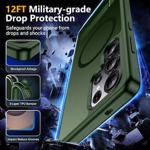RígidaCapa magnética SPIDERCASE para Samsung Galaxy S24 Ultra, [3 suportes] [proteção contra quedas de nível militar] com suporte invisível, capa fina à prova de choque para S24 Ultra 5G, verde —?Capa para S24 Ultra?Capa SPIDERCASE projetada para Samsung Galaxy S25 Ultra de 6,9 polegadas, não serve para outros modelos. Verifique o modelo do seu telefone antes de comprar. O corte preciso do orifício e os botões sensíveis garantem um acesso mais fácil a cada botão e função. - [Suporte funcional e invisível] O suporte da capa ultra para Samsung Galaxy S25 é dobrável, resistente e feito para durar, com suporte prático embutido feito de alumínio leve e sólido de nível aeroespacial, oferecendo uma experiência robusta e flexível nos modos retrato, paisagem ou teleconferência. Ele permite que você obtenha um ângulo de visão mais confortável. Reduza a frequência de olhar para a tela do telefone para evitar machucar as costas e o pescoço. - [Super Strong Magnetic] Com um anel magnético embutido que se alinha perfeitamente com os carregadores magnéticos, esta capa oferece uma fixação mais forte e uma velocidade de carregamento mais rápida. Compatível com todos os acessórios magnéticos e carregadores sem fio (como carregador sem fio para carro, bancos de energia sem fio, carteiras magnéticas, etc.). - [12 pés à prova de choque de nível militar] Aprovado em testes militares de até 12 pés, ele tem uma parte traseira resistente escovada em PC e amortecedores de borracha macia e flexível que fornecem um forte amortecimento para quedas diárias. Airbag de dispersão de impacto poderoso e versátil de 360° integrado e tecnologia de canto resistente a impactos de 4 cantos. O design minúsculo de lábios de 1,5 mm sobre a câmera e molduras de 1,5 mm sobre a tela evita que a tela e a câmera sofram poeira e arranhões. - [Design fino e aderência confortável] Esta capa fina para Samsung Galaxy S25 ultra oferece maior portabilidade e aderência mais firme, fácil de manter limpa, evita impressões digitais e traz uma sensação excepcional de toque sedoso, sem volume e sem derrapagem, cabendo facilmente no bolso.